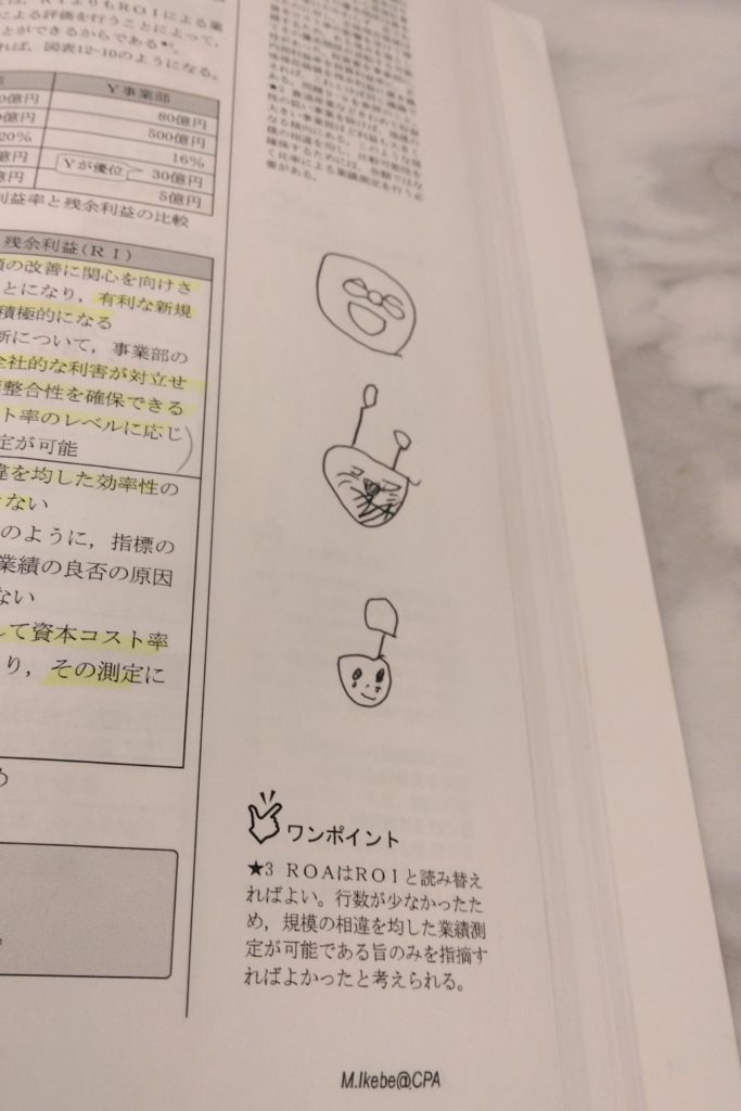上記写真は、管理会計論の論文対策集(CPA池邉先生)ですね。私はリビングの食卓で勉強をしていたのですが、テキストを広げたままにして他の用事をしていたところ、アンパンマン、ばいきんまん、ドキンちゃんが、ワンポイントを紹介している形になってしまいました。